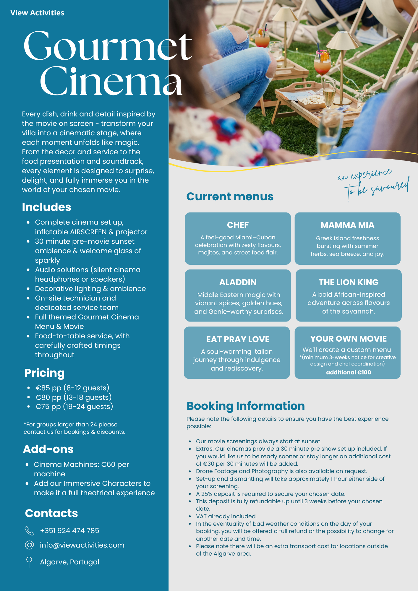 - Themed Gourmet Cinema Menu & Movie;