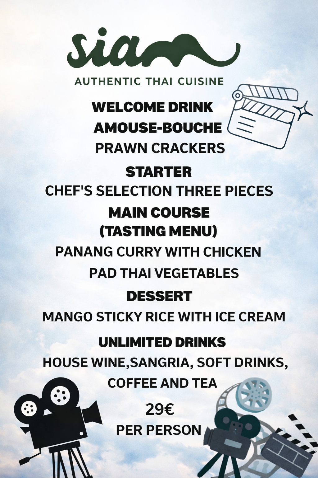 Pre-movie dining menu: From 18:30 (optional)